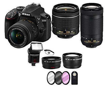 | With the AF-P DX Nikkor 18-55mm f/3.5-5.6 VR lens, it can shoot 3.1x the normal zoom lens covering the 18-55mm range of focal lengths. In addition, with the Nikon AF-P DX Nikkor 70-300mm f/4.5-6.3 ED lens, it has superb optics and telephoto field of view that can produce beautiful portraits with soft blurred backgrounds, and its near-silent autofocus pulse motor makes it also great for HD video recording. |